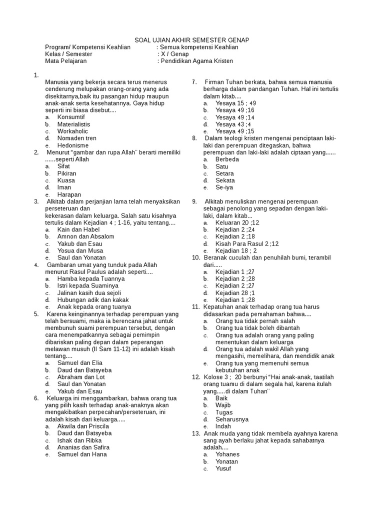 Soal agama kristen kelas x.