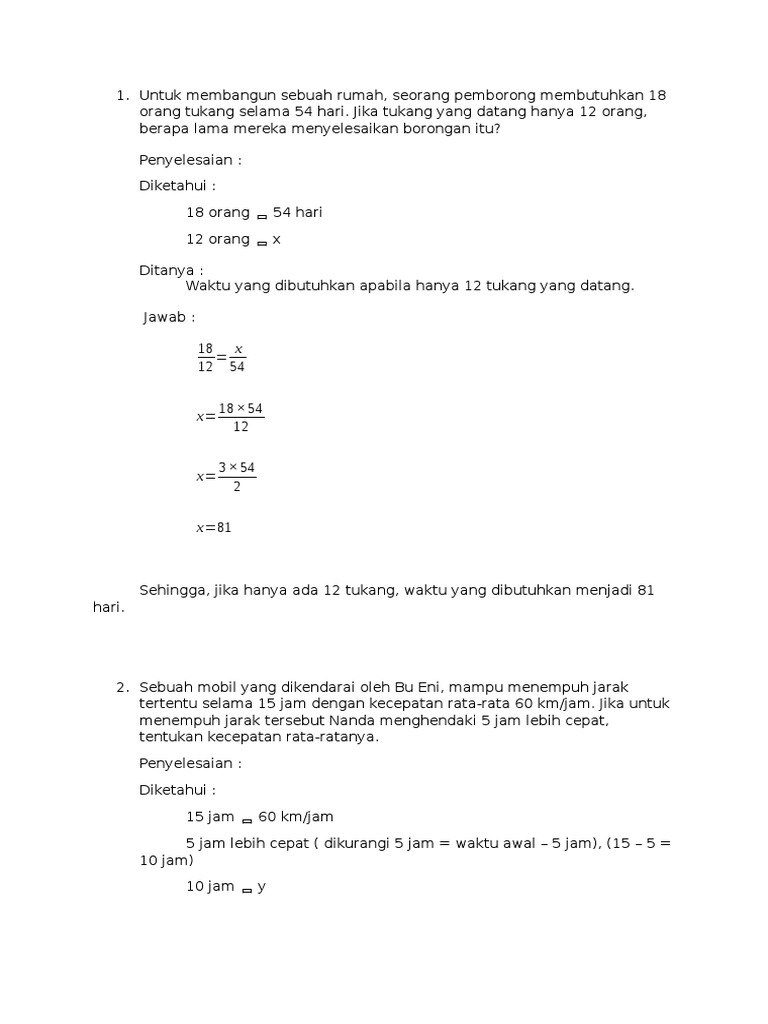 Soal dan pembahasan perbandingan berbalik nilai. Check spelling or type a new query. We did not find results for: Maybe you would like to learn more about one of these?