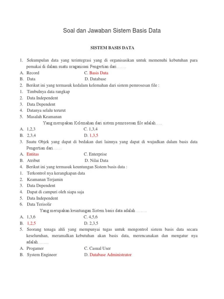 Sistem basis data untuk aplikasi sistem penjawab soal pilihan ganda yang. Basis data kelas xi rpl smk materi basis data . Bentuk pertanyaan juga berupa pilihan ganda. Memahami cara mengoperasikan software aplikasi basis data. 40 soal basis data lengkap dengan kunci jawaban.
